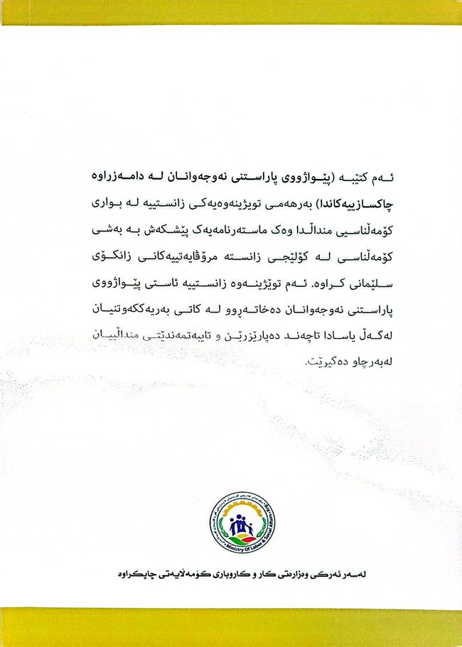 ئەوەی جێگەی باس و دەستخۆشیە لەسەر ڕەزامەندی خاتوو کوێستان موحەممەد وەزیری کارو کاروباری کۆمەڵایەتی، وەزارەتی کارو کاروباری کۆمەڵایەتی ئەرکی چاپ و بڵاوکردنەوەی لەئەستۆگرتووە.