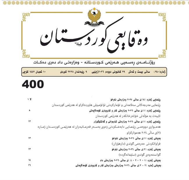 هەمواری ڕێنمایی ژمارە 1ـی ساڵی 2026 لێرە ببینن👇