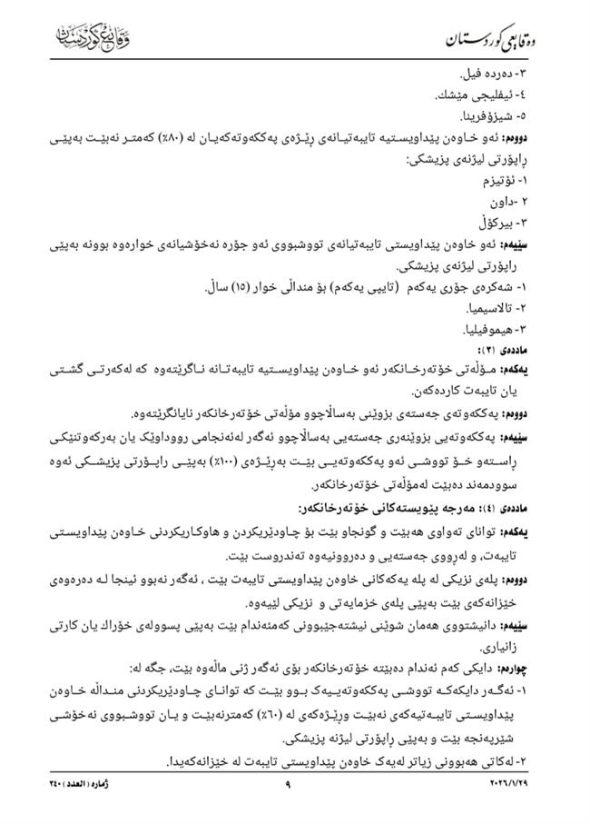 ⑥ ئەو حاڵەتانەی چارەسەریان نیە وەک (داون، لەدەستدانی ئەندامێکی جەستە، هیمۆفیلیا، تالاسیمیا) تەنها یەک جار لیژنەی پزیشکی بڕیاری لێدەدات.
